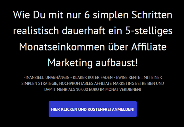 In diesem kostenlosen Online-Event zeigt er Dir, wie Du mit nur 6 simplen Schritten ein stabiles und realistisches Einkommen von 10.000 Euro und mehr pro Monat über Affiliate Marketing aufbaust – und zwar ohne eigene Produkte, ohne Technik-Frust und ohne Vorkenntnisse.